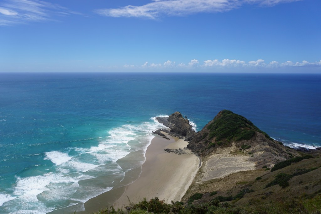 Even though I felt seriously like throwing up at first, the path down to the lighthouse took us past stunning views that I had long wanted to see as a kiwi, and chatting to Hadassa helped a lot too. We saw the churning water where the Tasman meets the Pacific Ocean, and the point where the spirits head home from.