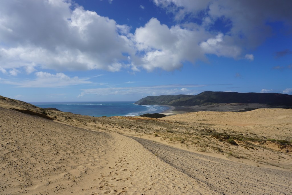 Te Werahi Beach was pretty, and I was surprised and excited to hear from two passing walkers that there was a 68 year old ahead of me doing TA who’d be at the same camp ground tonight. I followed his footsteps most of the way. The climb out of Te Werahi Beach went across and up very Mars-like terrain.