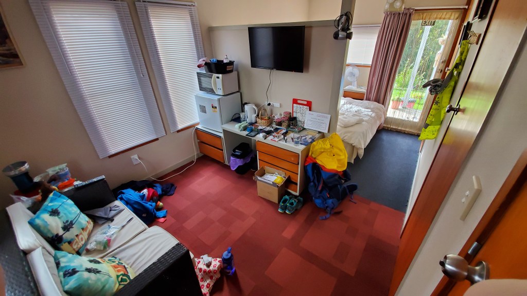 I noticed there were some scales in the bathroom, so I hopped on out of curiosity – and promptly wished I hadn’t. I can’t be 2.8kg lighter than when I left Christchurch, can I? I’m hoping that maybe they just weren’t particularly accurate scales… But, it would appear I can’t afford to leave any of the food behind on the next leg though!