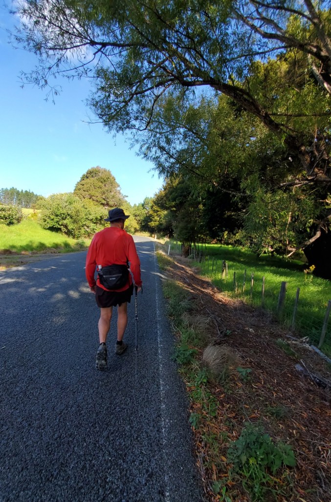 The plan was to attempt a total of about 38 km today, to where Ian was staying which is called Sue’s Place. There is a place a bit closer at 30km that was my original plan, but Ian hadn’t found it the best and I really did want to catch up with him. He kindly offered he could come and meet me and carry my pack for the last few kilometres, so we kept in touch via text. Normally Te Araroa goes through a section here called Russell Forest, which people approach by kayak, but with the forest closed the best option at the moment is this long road walk.