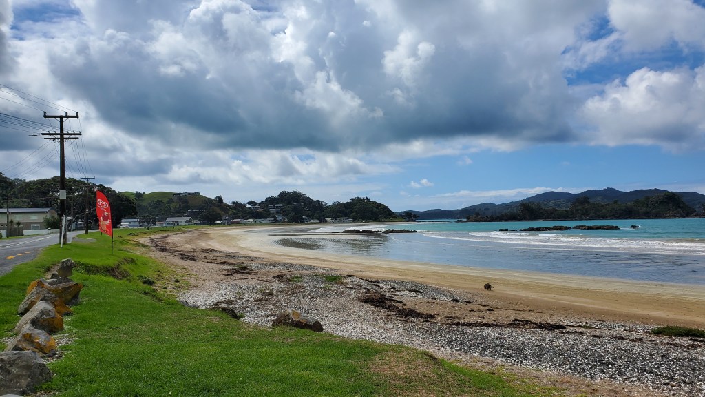 Tomorrow will be quite a big day aiming for Whananaaki. In hindsight I wish I’d checked the map and trail notes a little more carefully and perhaps stayed at Helena Bay. I think the short day will have been good for my legs though. It’ll be good to get off the road tomorrow too. Will we walk through crowding cows? Will the bulls mentioned in the trail notes be there?