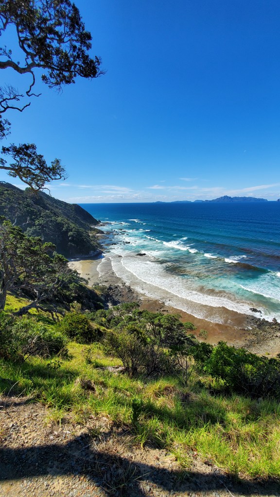 Luckily there were no stock in that paddock, and I popped out on a sealed road that’s on the map. There was another farm section, or walking around on this road. Hopefully it wasn’t a private road, but I took asphalt, and its short distance (1km) as worth the risk. It went past a building site for a new mansion, and two existing expensive looking houses, then the Mangawhai Heads track led off to the start. The amazing views recharged my tired legs, and it was exciting to see where I’m heading.