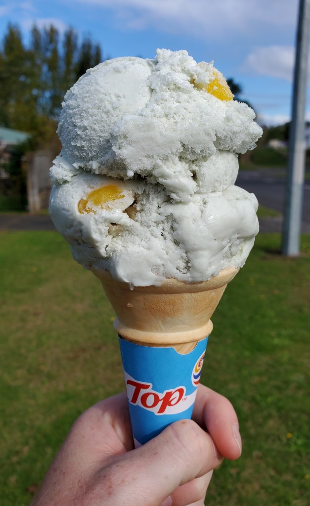 It took me a while to relax into a walking rhythm again. The road changed to asphalt and there were a few more signs of life and houses. The gift shop in the middle of nowhere was open, so I bought a chocolate bar and some spearmint leaves. The train went by, there was a slight increase in traffic, and then the footpaths of Taumarunui finally came into view! At the first dairy, although it really wasn’t that warm I got an ice cream to propel me the last little bit.