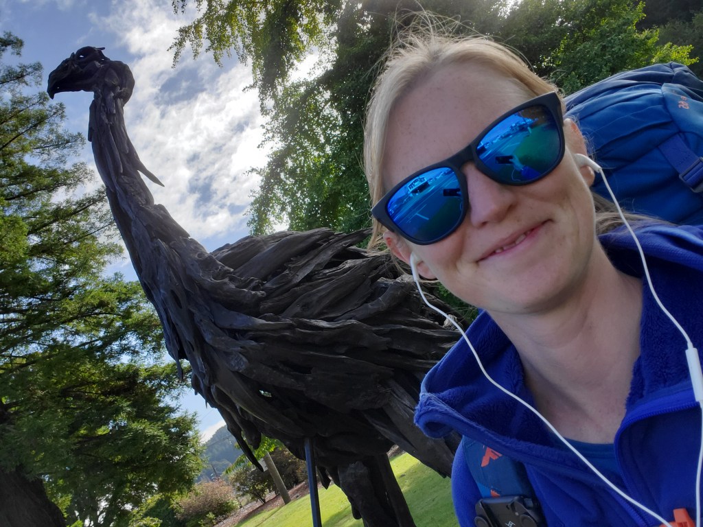 I was cutting it fine this morning – ready to check out at 9:59am but at least I was well rested and had enjoyed a few cups of tea. I headed off along the main street. Yesterday I noticed on Google Maps there’s something labelled ‘Taumarunui Giant Wooden Moa’ but I hadn’t seen it. I thought it must be old, and felt disappointed there hadn’t been any giant town objects to see on Te Araroa so far. Where were the giant fruit, fish etc? Well, good news, the trail took an odd dog leg in town seemingly to include the moa! It’s not huge, but I was amused nonetheless.