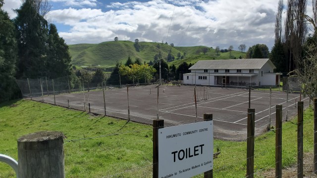Next up was the very small settlement of Hikumutu, featuring as far as I could tell a handful of houses, a community centre, concrete tennis court, and an old outdoor pool. However, the lovely people of Hikumutu had kindly installed a toilet for cyclists and hikers to use! The only one on today’s 28 km journey.