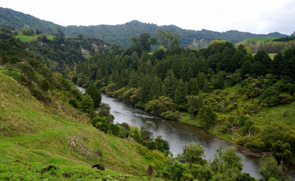 Heading out of Taumarunui, the Whanganui River came into view for the first time as the trail went over a bridge and onto the road I would spend most of the day on. The cycle tour also took this road, but there was hardly any traffic on it. I listened to my audio book again, and plodded along quite enjoying the scenery and nice temperature.