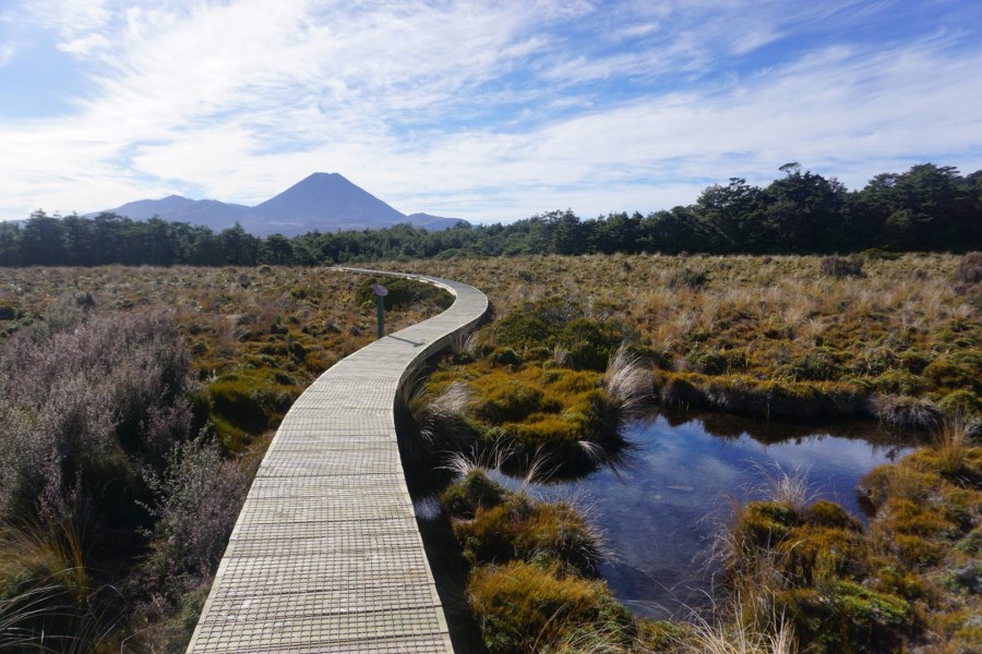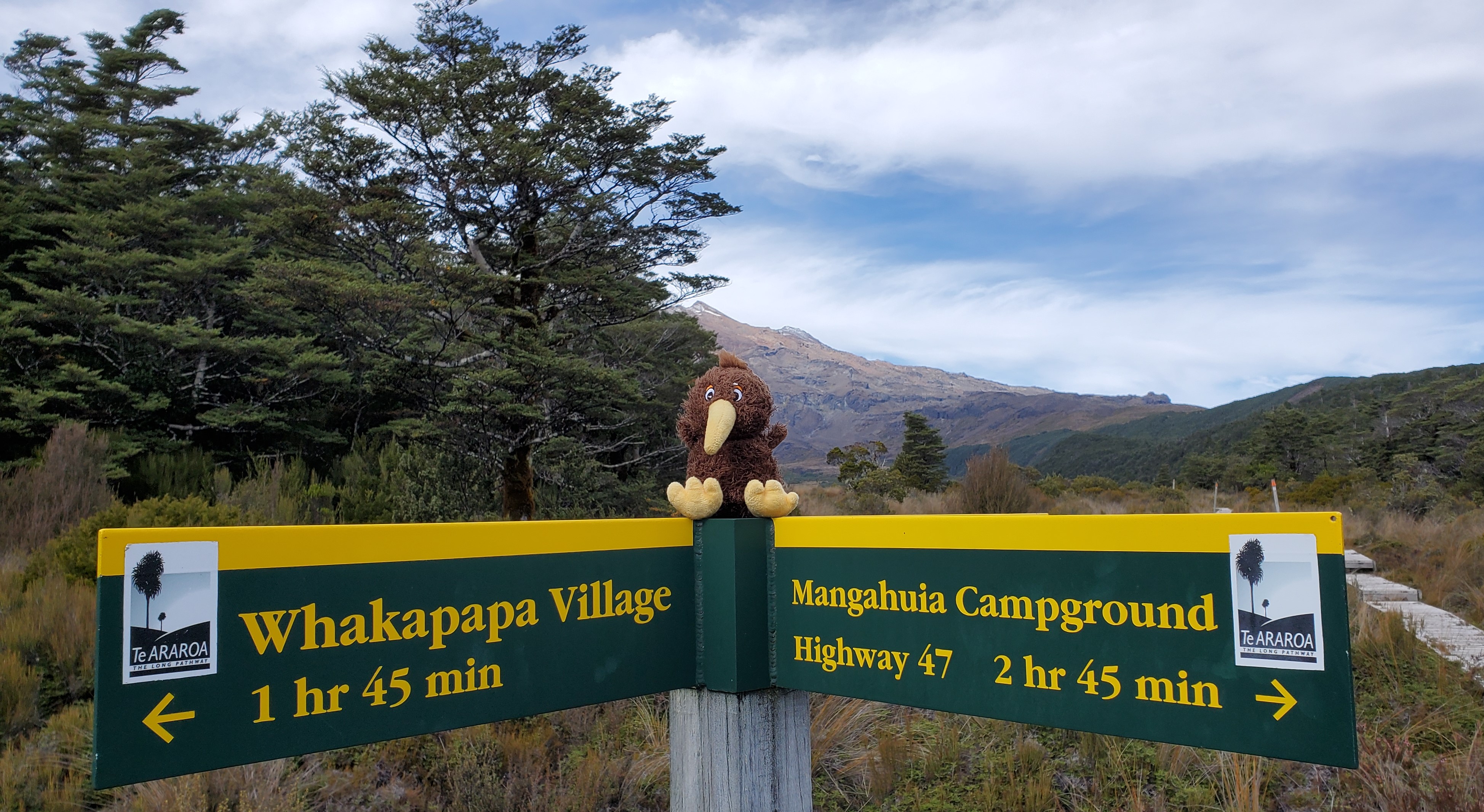 It was also exciting to see blue sky out the window – I might finally get some good views and figure out which mountain was Ruapehu! I said goodbye to my friends from Kaiapoi, and they wished me well – along with the mum whispering to me to make sure I always slept in my clothes in my tent so I could run away from anything. Yea, pretty much my modus operandi already.. The only problem was after putting on my shoes, I realised my hiking poles were nowhere to be seen. I’d obviously misplaced them in yesterday’s check in panic. Luckily the lovely staff were looking after them in the office. I can’t speak highly enough of Whakapapa Holiday Park – they were so kind and caring.
