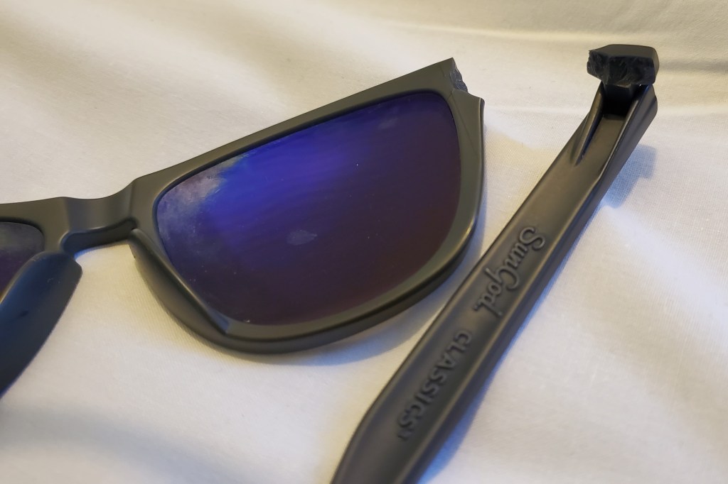 What the…. Both poles, my hat and sunglasses lay strewn on the track in all directions. Somebody had smashed me in the head. I looked around dazedly, heart racing. There was no one there, and I realized that I had walked smack bang (literally) into a very solid low hanging tree branch that was right at my forehead height. I was so embarrassed that I couldn’t even take a photo. What kind of muppet does that??! How on earth had I not seen that branch? Was it my cap visor? Did listening to an audiobook ruin my sixth sense of how to avoid obstructions on the trail? Maybe it was both of these, combined with the fact there was so much water on the trail I’d spent a lot of time looking down to pick my way through it. My head hurt a bit, and the impact had snapped my ‘adventure-proof’ sunglasses which had been sitting on top of my cap.