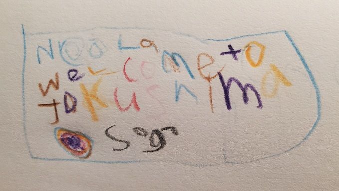 My friend Madoka and her family picked me up at Tokushima Airport, and with a bit of luggage shuffling, we got the bike in the boot of their people mover and drove back to their house. Built two years ago, it is super cool. I’d forgotten how much I love Japanese design and the way they build houses. I wish I had a Japanese house back home! Madoka’s son Sogo had even drawn a cute welcome sign ❤